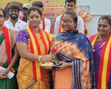 உலக மகளிர் தினத்தை முன்னிட்டு சென்னை அறிவாலயத்தில் திமுக சார்பில் நடைபெற்ற மகளிர் தின விழாவில் தூத்துக்குடி பாராளுமன்ற உறுப்பினர் கனிமொழி அவர்களிடம் தென்காசி மாவட்டம் ஆலங்குளம் ஊராட்சி ஒன்றிய சேர்மன் திவ்வியா மணிகண்டன் வாழ்த்துக்களை பெற்றார்.