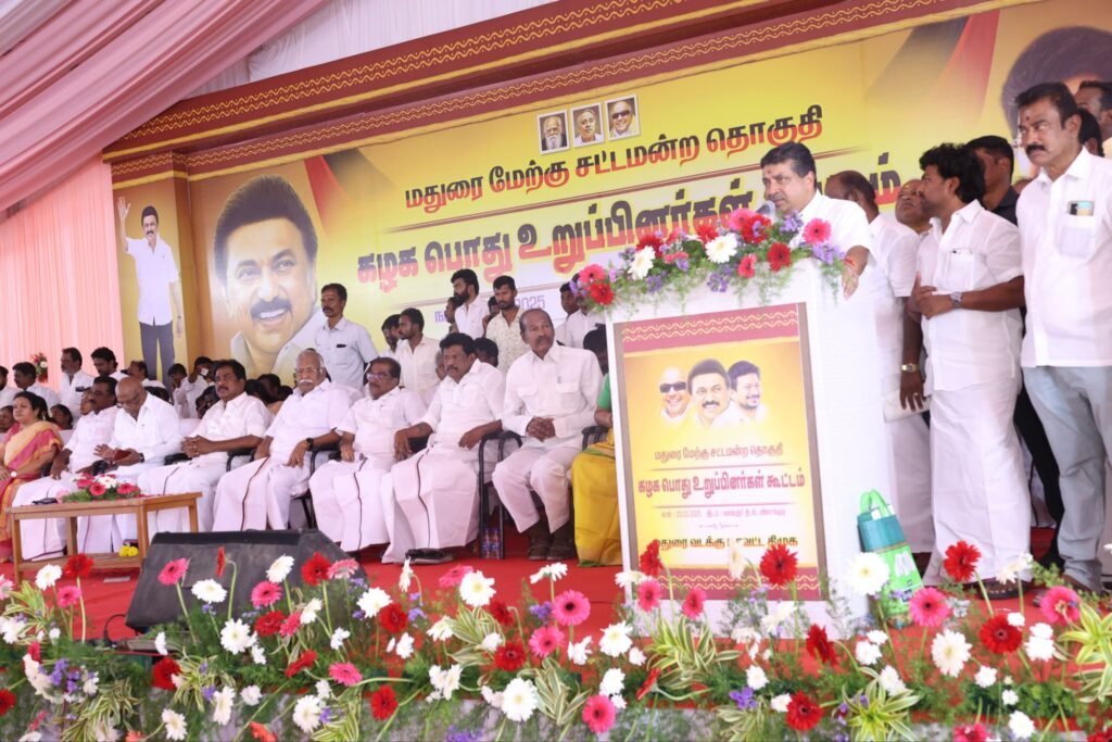20 ஆண்டுகாலத்திற்கு மேலாக நான் இந்த தொகுதியை வெற்றி பெறவில்லை என்றும் அதே நேரத்தில் உள்ளாட்சி 30% குறைவாகவும் பெற்றிருக்கிறோம் என்று சொன்னார்கள் இதற்கு பின்னால் நடந்த நாடாளுமன்ற தேர்தலில் அதிகம் பெற்றிருந்தாலும் நிச்சயமாக இந்த இருக்கக்கூடிய இந்த மேற்கு தொகுதியில் கூட்டம் அதுவும் மேற்கு தொகுதியில் இருக்கிறவர்களுக்கு மட்டும் இந்த பொது உறுப்பினர் கூட்டத்தை கூட்டுகின்றோம் இந்த கூட்டத்தில் பொது உறுப்பினர்கள் அனைவரும் முன்னாள் அமைச்சர் சட்டமன்ற அமைச்சர் சொன்னதை போல ஒரு மிகப்பெரிய கூட்டு முயற்சி வேண்டும் 2021 50% வெற்றி பெற்று இருக்கிறோம் இந்த கூட்டத்தை எப்படி நடத்த வேண்டும் என்று நினைத்தோமோ இன்றைக்கு நிச்சயமாக அதனை நடத்தி காண்பித்து இருக்கிறீர்கள் எங்களுடைய இலக்கு மதுரை மாவட்டத்தினுடைய இன்றைக்கு தென் மாவட்டத்திலே மதுரை மாவட்டம் நிச்சயமாக மிகப்பெரிய வெற்றியை பெறவேண்டும் என்று முதலமைச்சர் அவர்கள் சொல்லி இருக்கிறார்கள் எங்களை பொறுத்தவரை நாங்கள் எல்லாம் ஒன்று சேர்ந்து 10 தொகுதியை வெற்றி பெற்று அதிலேயே மேற்கு தொகுதியில் அதிக வாக்குகளை பெற்ற தொகுதியாக நாம் எல்லோரும் சேர்ந்து உருவாக்குவோம் என்று எந்த மாற்று கருத்தும் இருக்க முடியாது இன்றைக்கு பொது உறுப்பினர் கூட்டம் ஒரு மண்டலத்தில் நடத்துவோம் அதுலயும் மாவட்ட கழக கூட்டமாக நடத்துவோம் ஒரு கூட்டமாக நடத்தி இருக்கிறோம் மிகப்பெரிய அளவில இருக்கிறோம் நீங்கள் எல்லாம் முழு ஒத்துழைப்போடு இன்னைக்கு உறுப்பினர்களையும் மதித்து முன்னாள் பொறுப்பாளர்களாக வட்ட செயலாளர் இருந்தாலும் அவர்களையும் அழைத்து இன்றைக்கு இந்த கூட்டத்தை நாம் சிறப்பாக நடத்திக் கொண்டிருக்கிறோம் என்று சொன்னால் இந்த பணி மேலும் தொடரும் அதற்கு முன்னோடியாகத்தான் வரக்கூடிய 28ஆம் தேதி இந்த மேற்கு தொகுதியினுடைய என்னென்ன அடிப்படை தேவைகள் செய்ய வேண்டும் 22 வார்டுகள் இருக்கிறது ஒரு பேரூராட்சி இருக்கிறது ஏழு பஞ்சாயத்து இருக்கிறது அதற்கான பணிகளை செய்வதற்கான ஆய்வு கூட்டத்தை 28ஆம் தேதி எம் எஸ் மகாலில் நடத்த இருக்கிறோம் நம்முடைய மாநகராட்சியாக இருந்தாலும் மாவட்டமாக இருந்தாலும் அவர்களுடைய பரிந்துரைகளை முதலமைச்சர் கவனத்திற்கு கொண்டு சென்றுநிச்சயமாக அந்த பணிகளை செய்வதற்கு முன்னாடி தொண்டனாக உங்களோடு கலந்து அந்த பணியை செய்வதற்கு இருப்பேன் என்று இந்த நேரத்தில் நான் சொல்லிக் கொள்கிறேன் நிச்சயமாக எது எப்படியாக இருந்தாலும் இன்றைக்கு நாங்கள் இருக்கக்கூடிய இந்த 10 தொகுதிகளையும் வெற்றி பெறுவதற்கான பணியை தாங்கள் துவக்கி இருக்கிறோம் என்றார்.