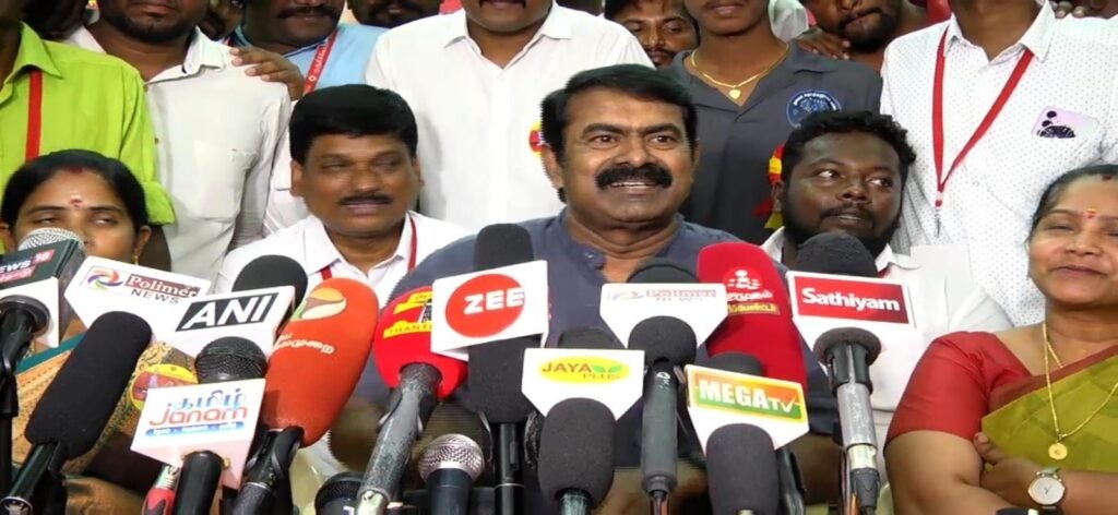 காட்பாடி தனியார் திருமண மண்டபத்தில் நடைபெற்ற நாம் தமிழர் கட்சியின் வேலூர் மாவட்ட கலந்தாய்வு கூட்டத்தில் கலந்து கொண்ட நாம் தமிழர் கட்சி தலைமை ஒருங்கிணைப்பாளர் சீமான் செய்தியாளர்களுக்கு அளித்த பேட்டியில்,