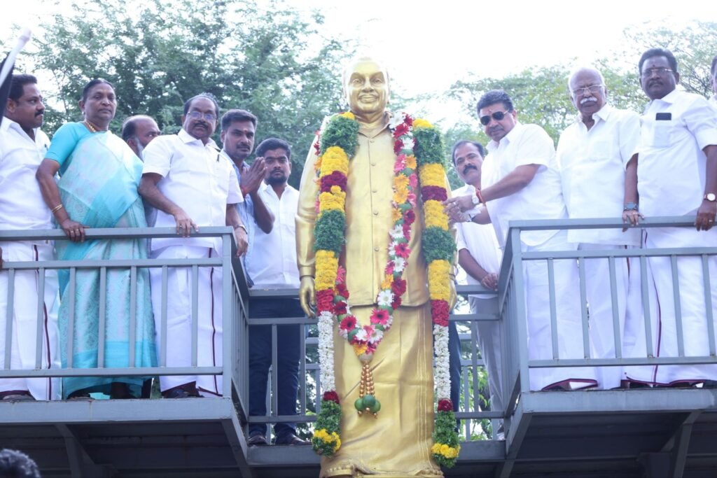 பி.டி.ஆர்.பழனிவேல் ராஜன் அவர்களின் 93-வது பிறந்த தினத்தை முன்னிட்டு அவரது திருவுருவச் சிலைக்கு மாலை அணிவித்து மரியாதை செலுத்தினர்