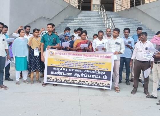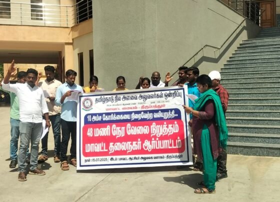 திருப்பத்தூர் மாவட்டம் மாவட்ட ஆட்சியர் அலுவலகத்திற்கு முன்பாக தமிழ்நாடு அளவை பனி சுமை தமிழ்நாடு அரசுக்கு எதிராக கண்டன கோஷம் எழுப்பி கண்டன ஆர்ப்பாட்டம் மாவட்ட தலைவர்…